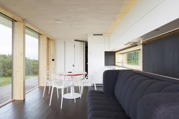 The house is equipped with high standard ventilation systems and they features solar heating during spring and autumn. The materials used include wood which were employed for the walls and facades and glulam for the structural frame. Also, the houses were designed to be modern and to have more in common with stone and concrete structures than with traditional wooden houses.-Via http://amigosparasiempre4.blogspot.com
